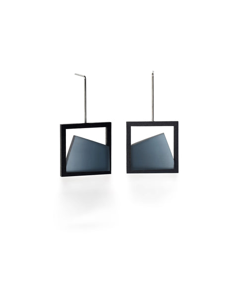 The Isla earrings, derived from island, evokes a sense of stillness and balance highlighted in the beauty of light captured in resin. Each earring features a smooth gradient that shifts softly from light to dark, creating a subtle sense of depth and movement. The translucent resin reflects and diffuses light with every angle, adding a quiet luminosity to the geometric form. Elegant and modern, these earrings bring a refined balance of contrast and calm to any look.