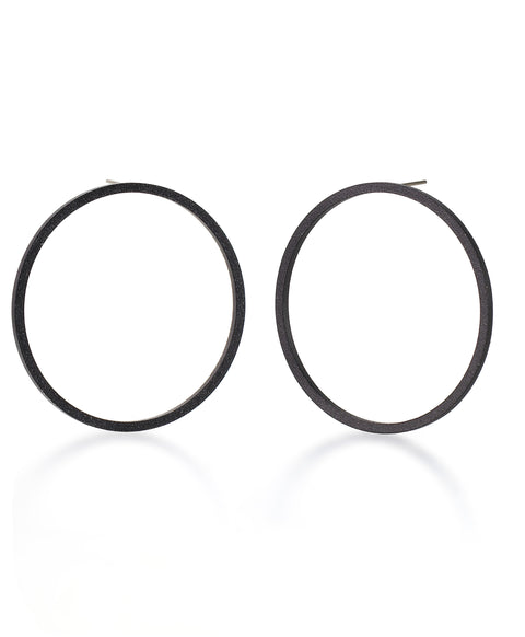 These studs offer the collection's purest distillation—a perfect circle that speaks to continuity and completeness. The open framework creates a sense of lightness while the circular form softens the collection's angular vocabulary with timeless geometry. Understated yet distinct, they prove that even the simplest shape can carry profound sculptural weight.