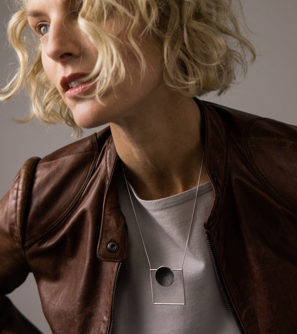 Imagination meets romance. This handmade necklace is made from stainless steel and features a geometric framing of a diamond dust infused dome pendant. Stylishly modern for the contemporary design lover.